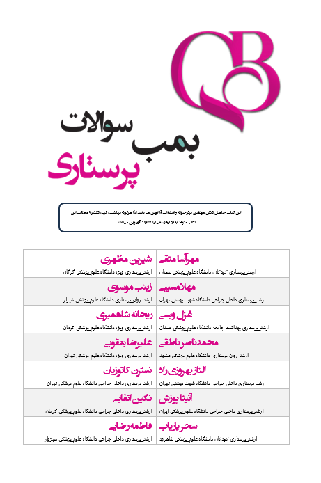 کتاب بمب سوالات پرستاری (QB) بهعنوان تازهترین و کاملترین مجموعه سوالات تالیفی تخصصی در رشته پرستاری، منتشر شده و فرصتی بینظیر برای داوطلبان آزمونهای پرستاری فراهم کرده است.